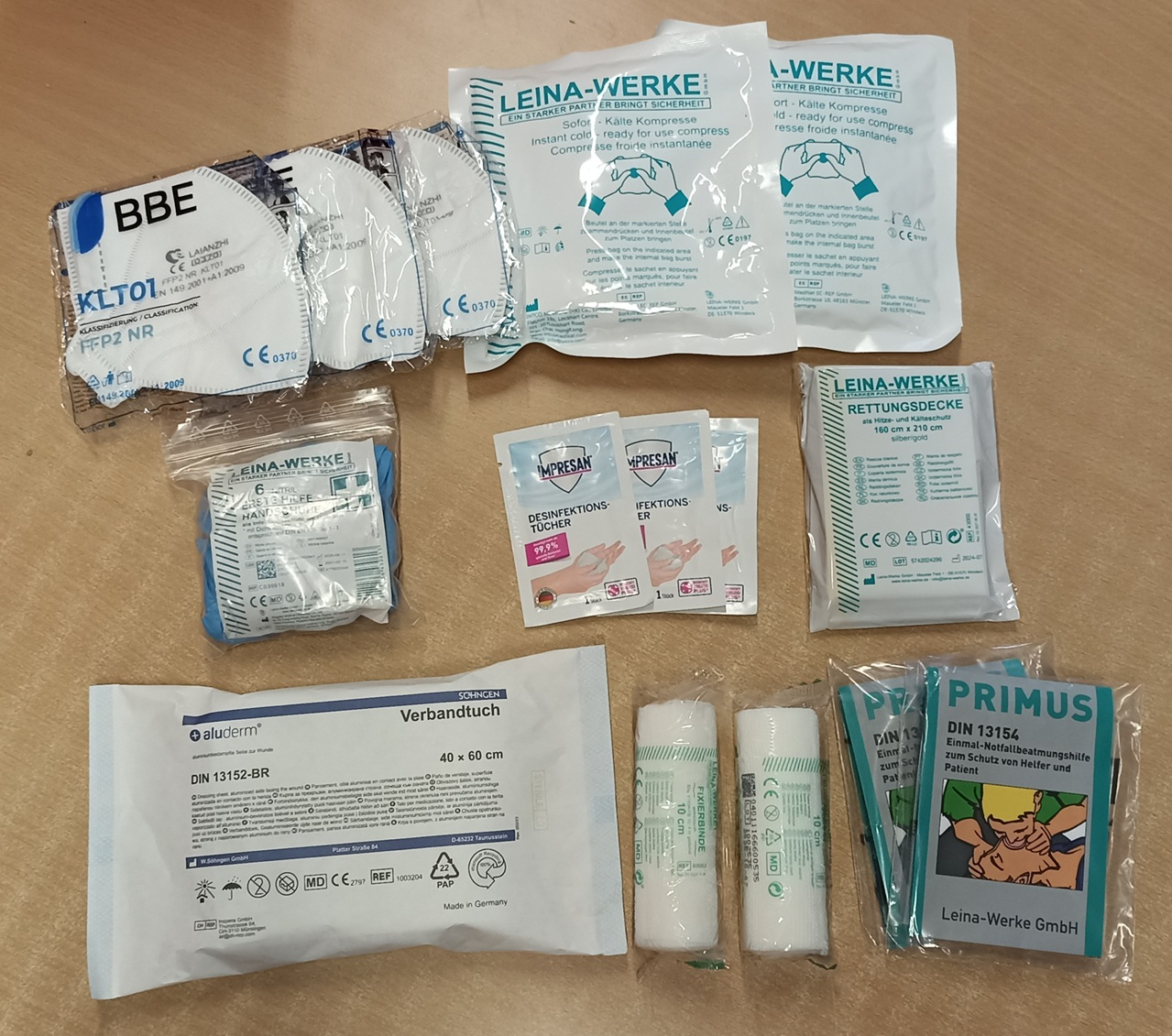 Ergänzungsset für Erste Hilfe Koffer Typ 2 gem. ÖNORM Z 1020-2025 für 25 Arbeitnehmer; Inhalt: 1 Verbandtuch aluminiumbedampft, 2 Fixierbinden 10cm x 4m, 1 Rettungsdecke, 6 Stk Nitril-Schutzhandschuhe, 2 Beatmungshilfen, 3 Desinfektionstücher, 3 FFP2 Nasken, 2 Kältekompressen