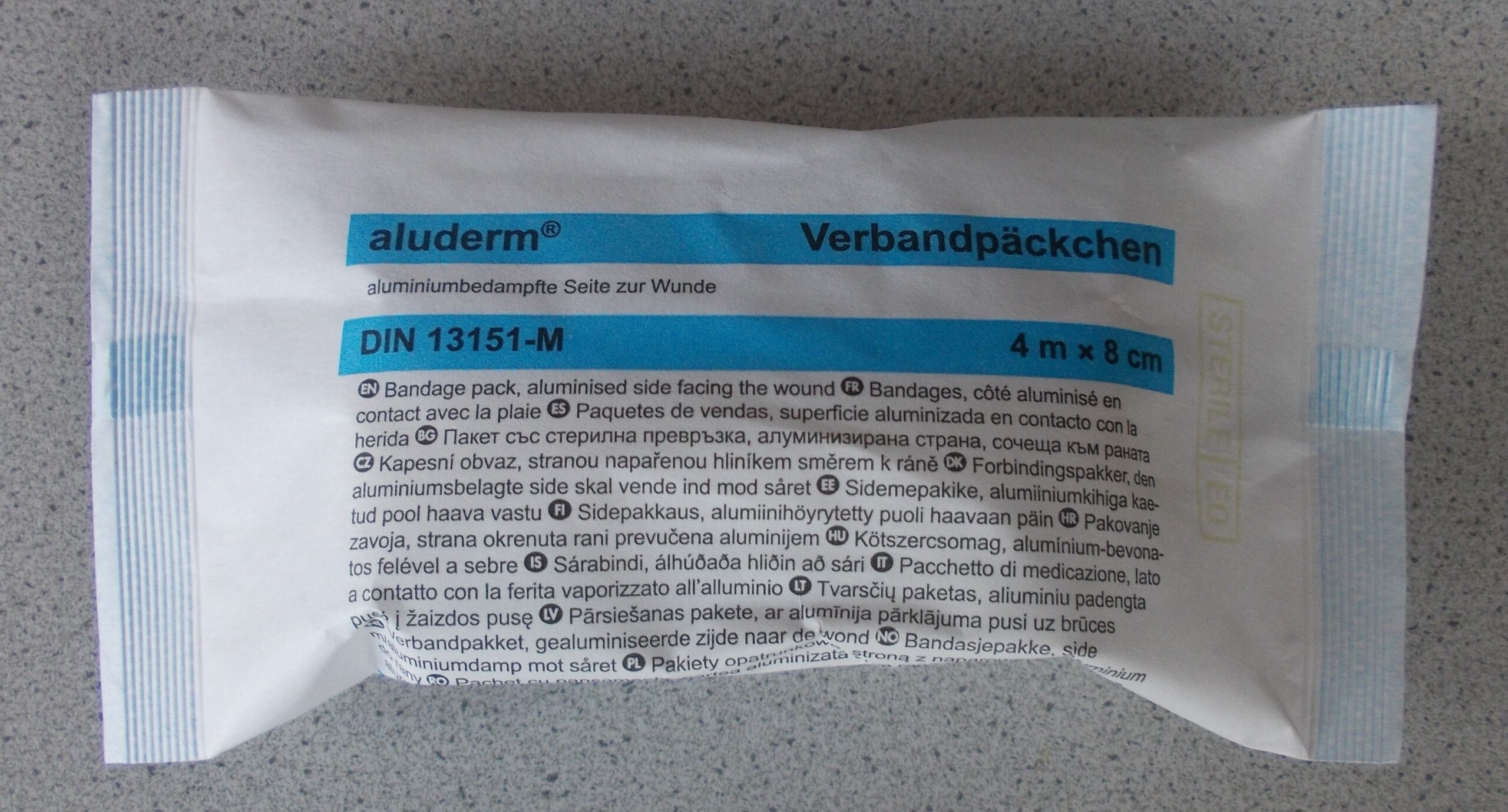 Größe Mittel, Kompresse 8 x 10 cm aufgesiegelt auf Mullbinde 4m