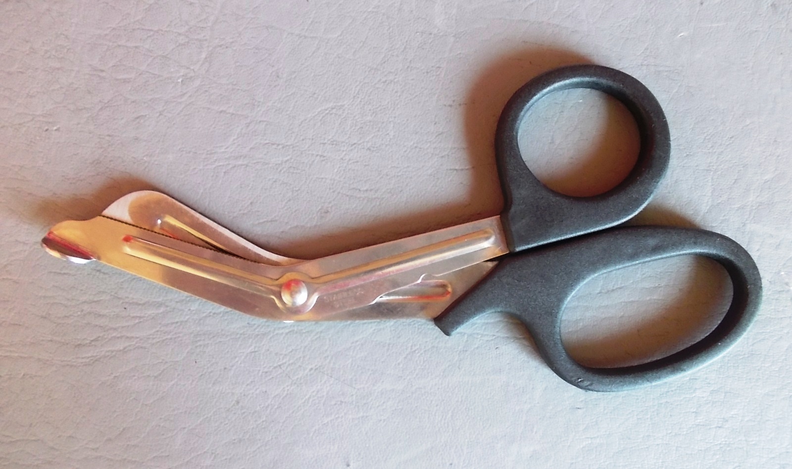 Verbandschere 19 cm, gem. ÖNORM Z 1020, mit Plastikgriff. Auch zum Durchschneiden von Autosicherheitsgurten geeignet.